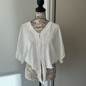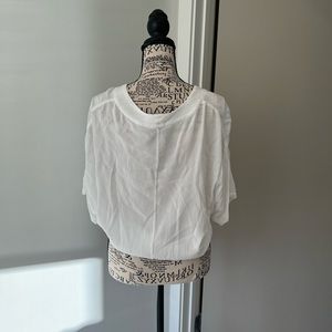Size XS but runs oversized in my opinion. Lightly, gauzy flowy top. Excellent used condition!