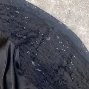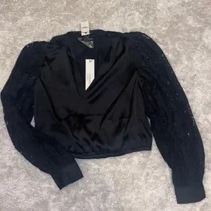 Express women’s black satin top with lace sleeves and cinched bottom, size small and NWT