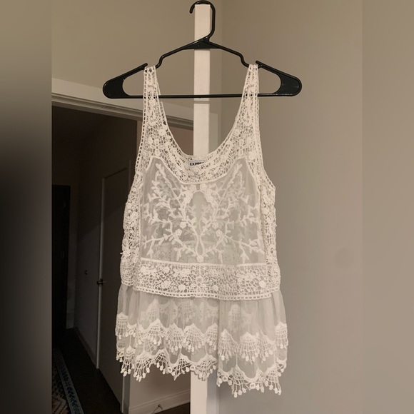 Express white lace sheer tank top. Size small. Flowy and loose fitting.