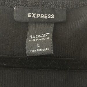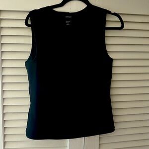 Express top sleeveless with a round neck. Very comfortable. Can no longer wear it due to weight loss