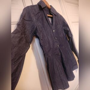 worn once express top button up material tag pictured dark denim like look thin material size small