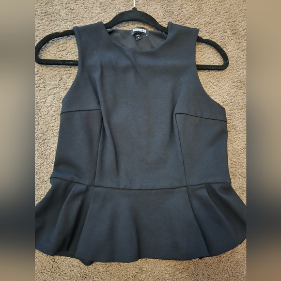 Chic sleeveless top by Express. black color adds sophistication. Perfect for day or night. black peplum top worn once size small