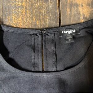 Key hole back. Not very stretchy material. Sleeves kind of pouf a little bit.