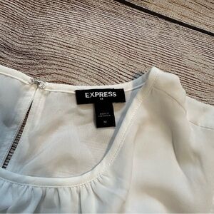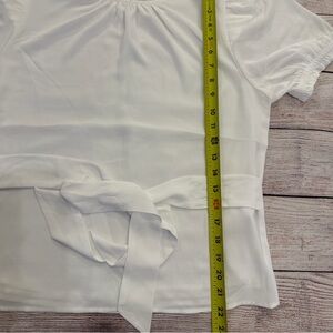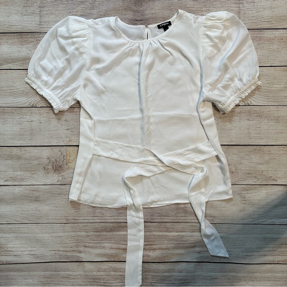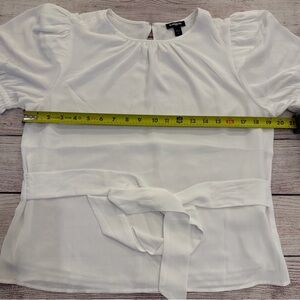 Puff sleeve and waist tie. Size Medium. Ivory. Approximately 19.5 inches pit to pit and 22 inches shoulder to hem.