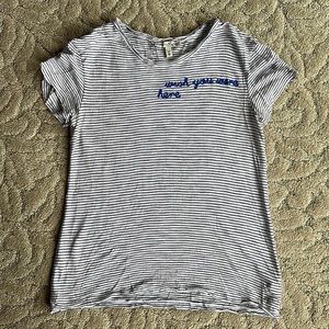 Express Top Size XS striped black and white with blue print and rhinesto…