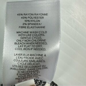 45% Rayon 43% Polyester 10% Nylon 2% Spandex