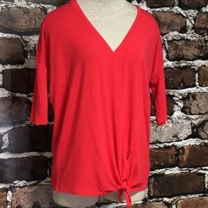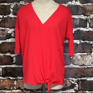Express Top Tie Front T-Shirt Coral Red Small Petite