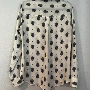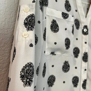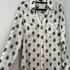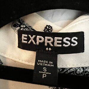Express Top White w Black Print Portofino Sheer Button Long Sleeve Career Sz SP
