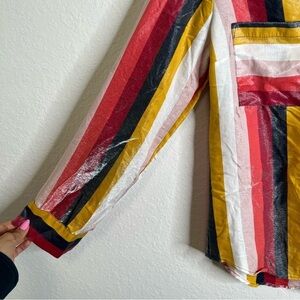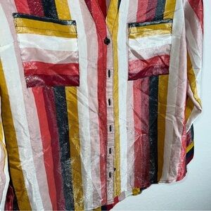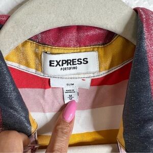 Express Women Medium Stripe Slim Portofino Shimmery Rainbow Top Blouse Sateen U