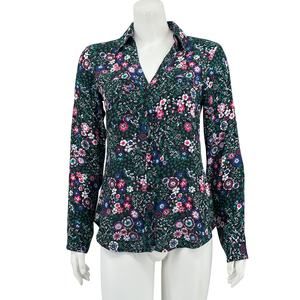 Express Top Womens Small Black Dark Floral Portofino Slim Fit Sheer Long Roll Tab Sleeves V-Neck Office Career Work Romantic Bloomcore Whimsical