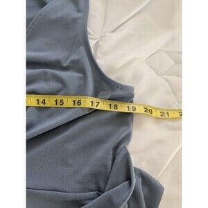 Express Top Womens L Textured Stretch Sleeveless Vneck Tucks Blue Peplum Sash