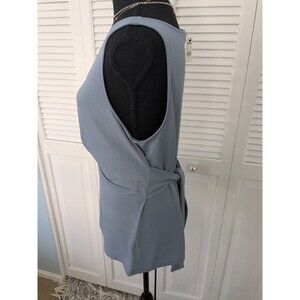 Express Top Womens L Textured Stretch Sleeveless Vneck Tucks Blue Peplum Sash