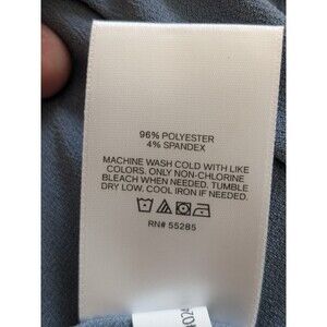 This Express top is a sleeveless, v-eck style made of textured blue fabric with deep tucks for added detail. It features a peplum sash at the waist, giving it a flattering silhouette. The top is a size L and has a regular fit with stretch for comfort. Made of a blend of polyester, spandex, and rayon, it is machine washable and suitable for travel, parties, or casual wear in the summer, fall, or spring seasons. Super-flattering cut!!