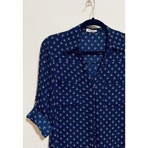 Express Top Womens Medium Navy Blue Anchor Print Portofino Shirt Flowy Boho