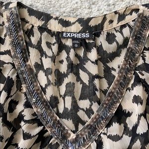 Express size XS animal print blouse with beaded v-neck