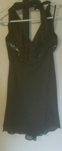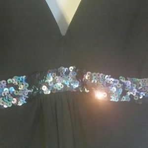 Beautiful top by Express. It is great for going out in! I wore this on a cruise, (if I find a photo of me in it, I will post to show how truly flattering and gorgeous this top is. I probably wore this 3 times total, so it's in Excellent condition. Black sz M with just the right amount of sparkle. Sequin. pretty long, but probably not long enough to double as a dress unless u are short.