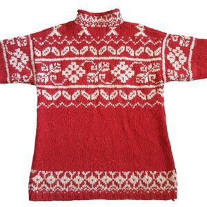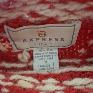 Express TriCot M Oversized Red White Wool Pullover Chunky Thick Knit Cozy Nordic