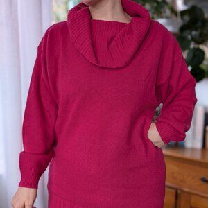 Express Tricot - 90s Angora wool berry magenta cowl neck tunic sweater - Large
