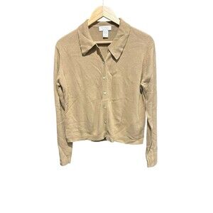 Express Tricot Button Down Cardigan Tan Sized Medium Collar 90s Y2K Vintage