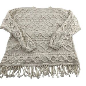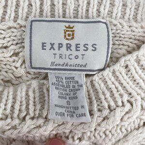 Express Tricot Handknitted Sweater Women's size Small Vintage 90s Cable Knit Ivory