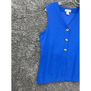 Express Tricot Vest Sweater Womens Large Blue Knit Slit V Neck Button Front