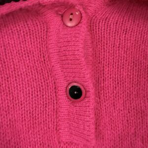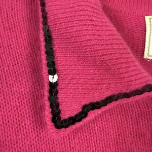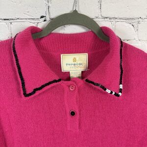 Express Tricot Vintage Knit Polo Sweater Lambswool Angora Rabbit Hair Pink Sequin Women's Size Medium M.