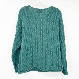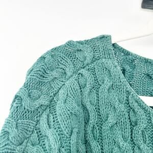 Express Tricot Womens VTG Vintage Fall Handknit Cable Knit Fisherman Sweater in Green. Size Medium.