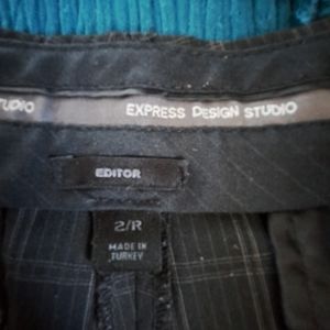 Express, relax fit, wide leg, gently used, excellent condition trouser pants. Dark gray, classic pattern. No rips or stains. Smoke-free home. Size 2