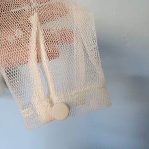 Faint stains in the cami top and in the tie; tiny snag in the fabric (see last two pictures).