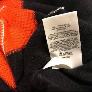 In excellent condition. Express black, red & burgundy argyle tunic sweater. Boatneck with ribbing at the neck, wrist, and bottom. Size L. Measurements lying flat: neck to sleeve 29, bust 25, length 28.