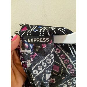 Express Tunic Mini Dress Women’s Size XS Black Floral Geometric Keyhole Boho