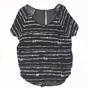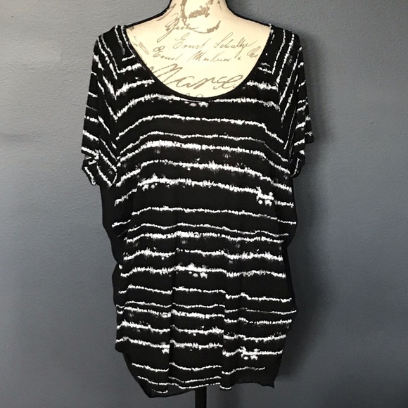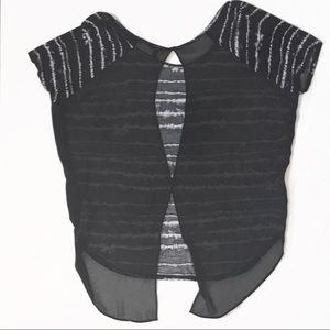 Express Tunic Open Back Back is open, split and sheer. Very cute on and it like new.