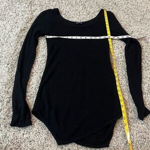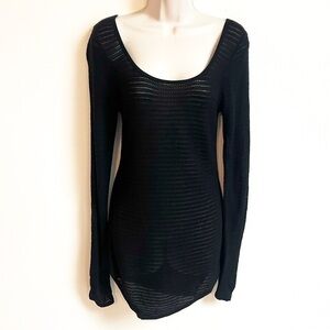 Express Tunic Sweater Open Knit Scoop Neck Asymmetrical Hem Pullover Black Small