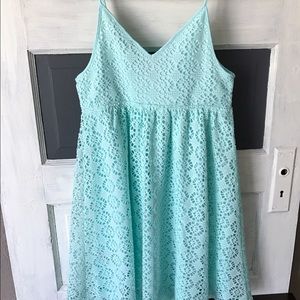 Cute lace dress that is strapless & has slip underneath. Very comfortable and great summer dress!