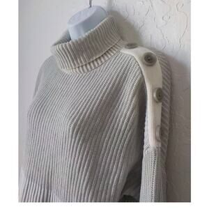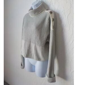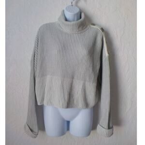 Express Turtle Neck Cropped Sweater Women XS Gray Cable Knit Colorblock Cotton