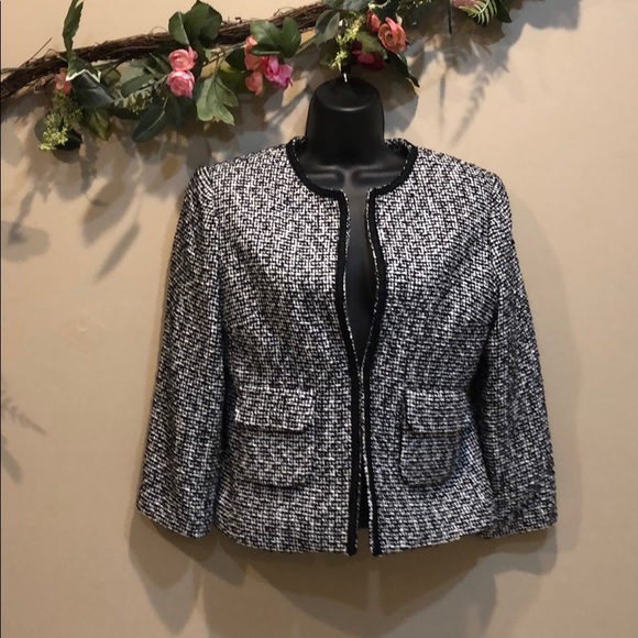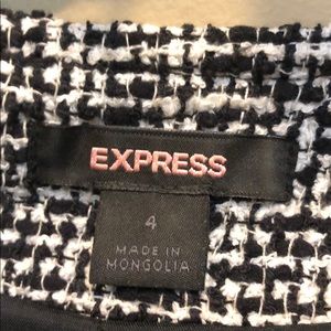 Excellent used condition. Black and white tweed with closure in front. Express Blazer Size 4