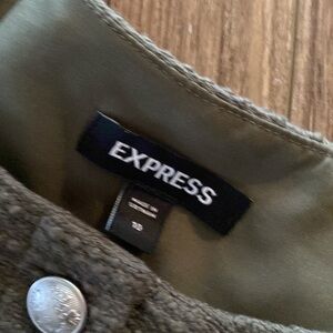 Express Tweed sleeveless utility romper army green Sz 10. military whimsical