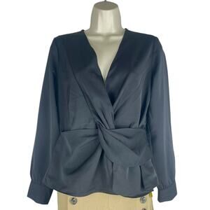 Express V Neck Long Sleeve Twist Front Top Black Size XS