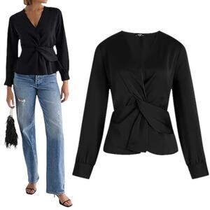 NEW Express V Neck Long Sleeve Twist Front Top Black