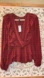Chic blouse with layered ruffles. Deep red hue. Perfect for stylish outings.