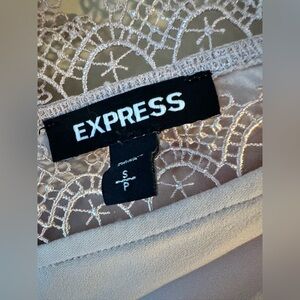 This sleeveless camisole from Express showcases a charming pink hue with ruffled detailing and a flattering peplum silhouette. The lightweight fabric drapes beautifully, making it a versatile choice for both casual and dressier occasions.