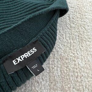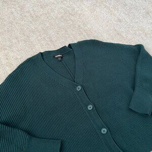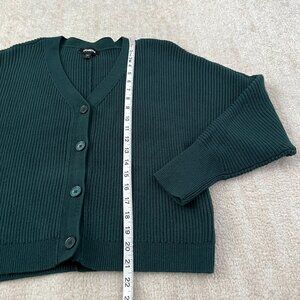Express V-Neck Ribbed Cardigan Knit Green Sweater L