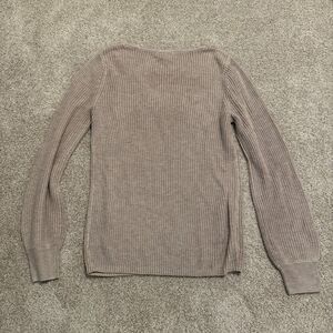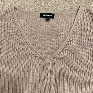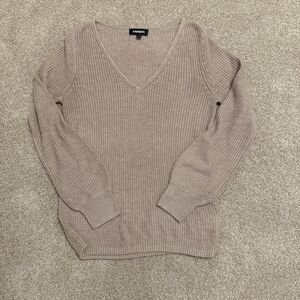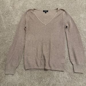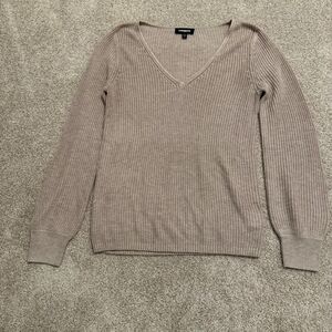 Express V-Neck Ribbed Long Puff Sleeve Knit Sweater Pinkish Beige Women's Small.