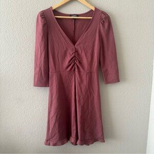 Express V-Neck Ruffle Hem Fit And Flare Dress Dusty Pink Size Small