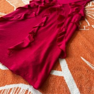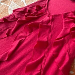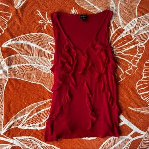 Express V-Neck Tank Top with Ruffle detail on the front. Very flattering fit. Great condition. Women’s size medium.