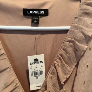 This is a brand new Express dress. It is a Pink color with gold flecks of color. This dress is size XS. It is brand new with tags and has never been worn.