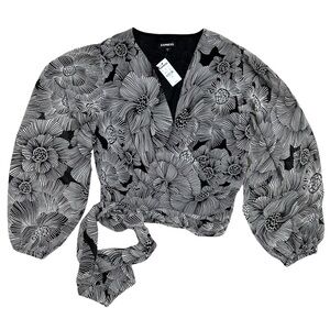Express V-Neck Wrap Top Floral Black And White Long Sleeves SZ XS is NEW WITH TAGS.