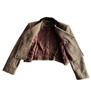 Express VTG 90s Wool Blend Double Breasted Wrap Skirt Tweed Brown Suit Set S
