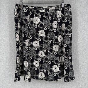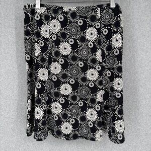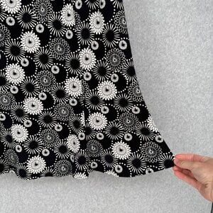 Express VTG Y2K Fit and Flare Skirt Size M Black White Dark Floral Retro Stretch