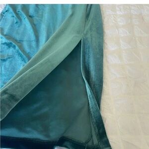 This stunning sheath dress from Express features a rich green hue and a chic side slit, perfect for cocktail parties or a night out. The sleeveless design with spaghetti straps and a square neckline offers a modern and elegant look. Its form-fitting silhouette and midi length create a sophisticated style that is both timeless and versatile.